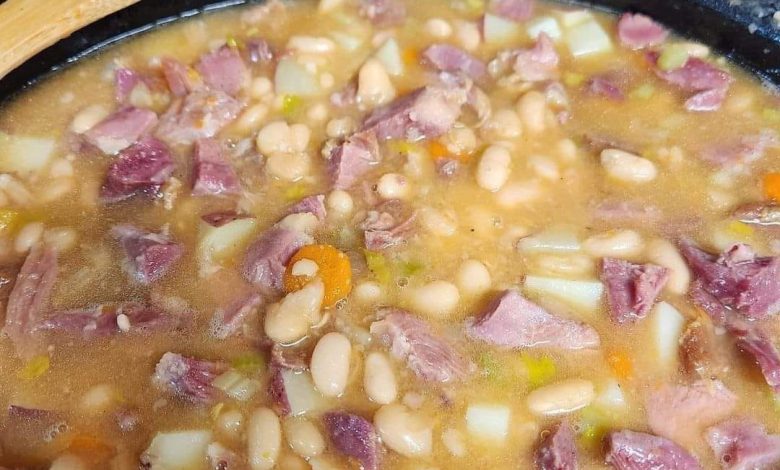 6. Remove the ham pawns from the crockpot. Shred off the meat, and return the ham meat to the crockpot with the beans. Blend and serve with salt and pepper to taste.