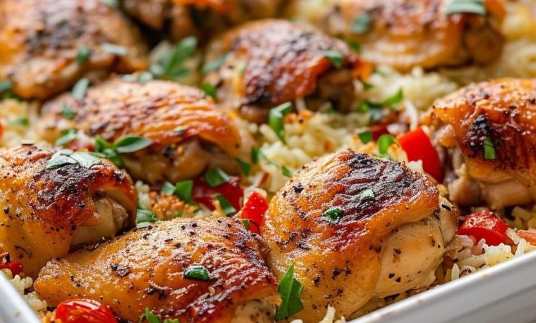 This easy chicken curry is baked with rice on top, creating a crispy topping for an Indian dinner with a twist!