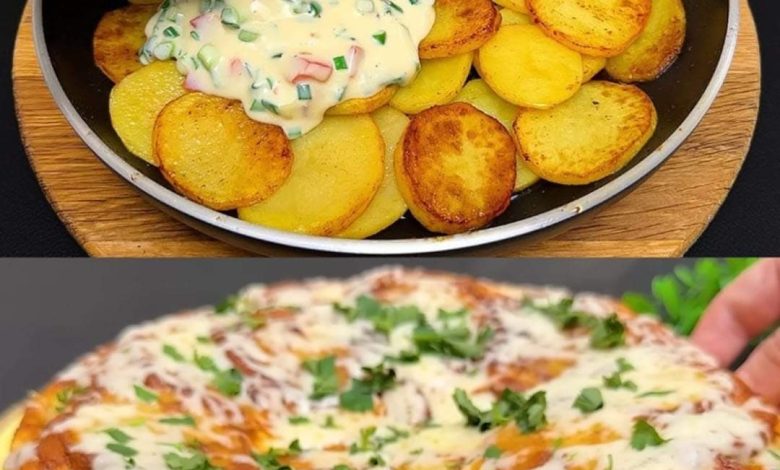 - In the same skillet, arrange the fried potato slices in an even layer.