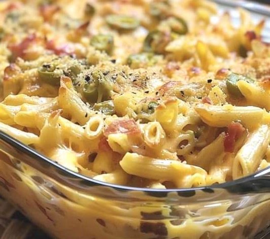 “Jalapeño Popper Pasta Bake with Crispy Bacon”
