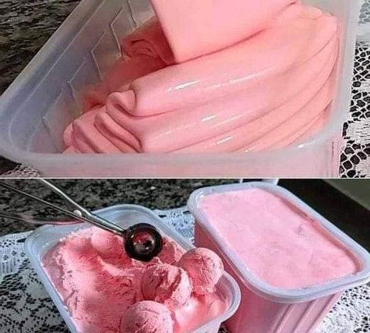 • Scoop the strawberry ice cream into bowls or cones and enjoy!