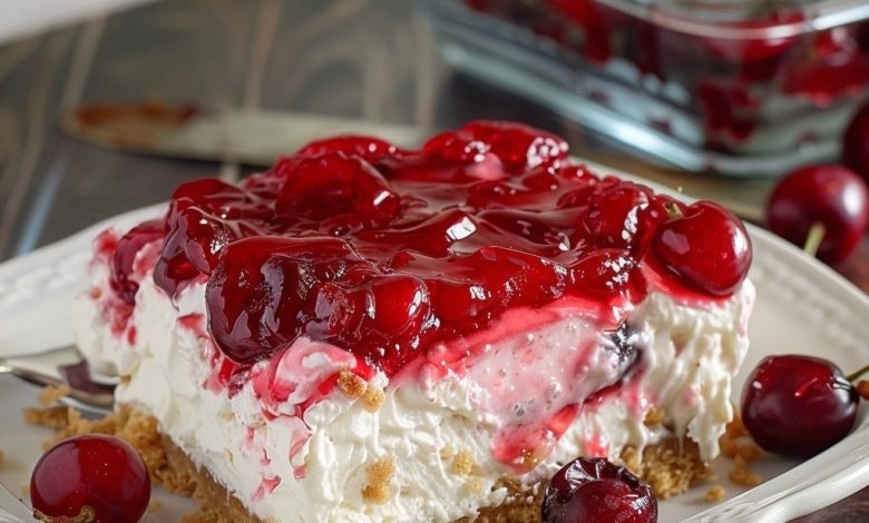 Use a spatula or spoon to spread the filling evenly over the graham cracker. Spread the cherry filling evenly on top with a spoon.