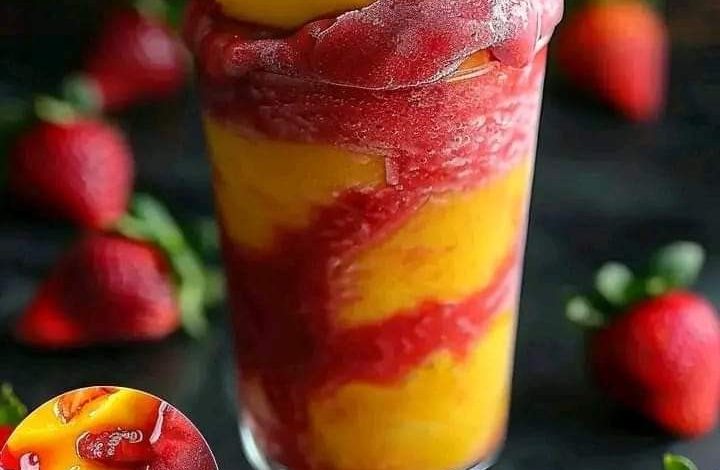 - Gently pour a layer of the strawberry smoothie over the back of a spoon to create a distinct layer.