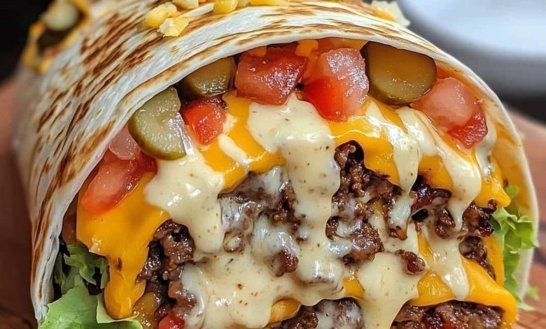 - Slice in half and enjoy your loaded cheeseburger wrap!