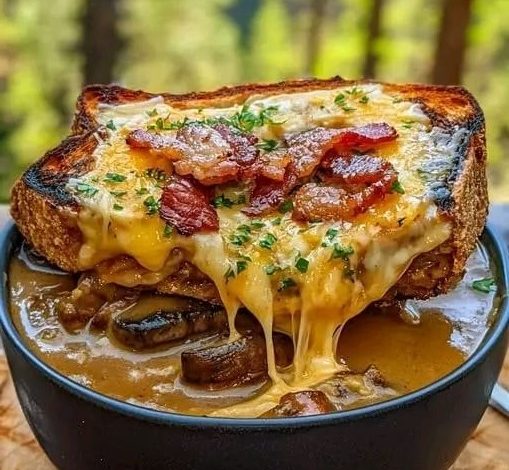 Luxurious French Onion Soup with Cheesy Bacon Toast