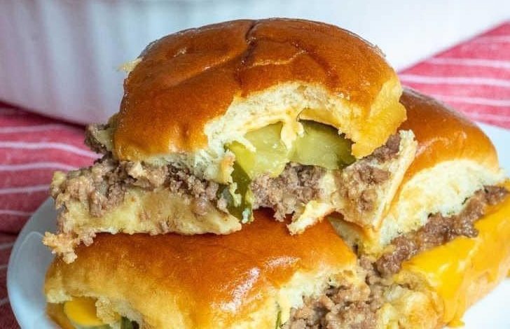 4. Place the bun bases in a baking dish and cover with the meat mixture. Place the cucumbers on top, followed by the cheese slices, and cover with the bun tops.5. In a small bowl, whisk together the melted butter, brown sugar, Dijon mustard and Worcestershire sauce and spread over the buns.