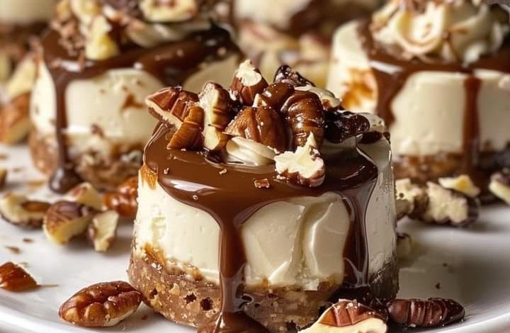 Mini Cheesecakes with Pecans and Caramel Drizzle