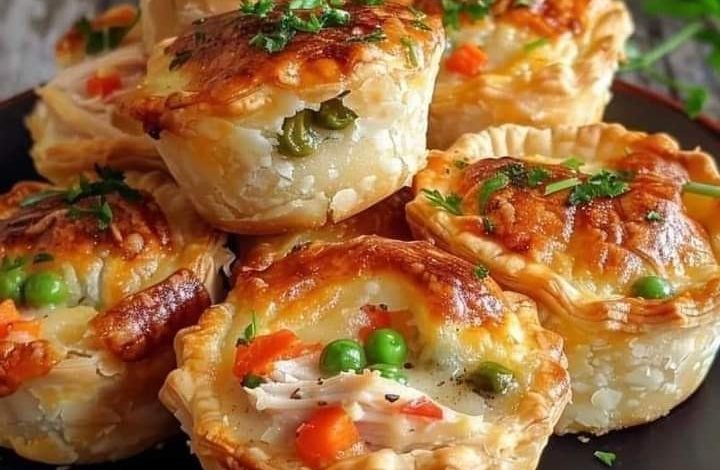 - Spoon the chicken mixture into each pie crust, filling them nearly to the top.