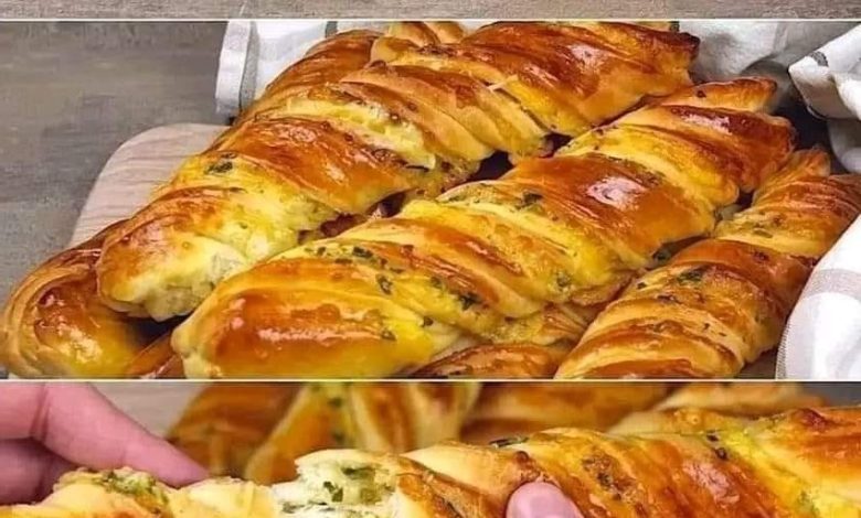 It is rolled out with a rolling pin and cut into strips. Attach the two strips and place the other grease between them. Replace each pair of lines as shown in the video. Place it on baking paper and let it sit for 20 minutes. Brush them with egg and bake at 180 degrees for 25 minutes. Enjoy it!