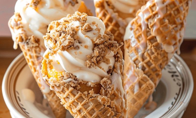 On a recent trip to visit a friend in sunny Florida, she introduced me to a clever combination of two Southern favorites: the peach cheesecake cone. One bite of the velvety cheesecake wrapped in warm peach compote, all wrapped in a waffle cone covered in white chocolate, and I was completely sold. This simple dessert manages to capture the essence of a patchouli cobbler and a rich NY cheesecake all in one. As soon as I got the