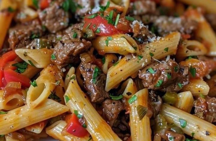 This penne pasta dish with beef and peppers is flavorful and hearty, perfect for a comforting dinner. Enjoy the blend of tender beef, vibrant bell peppers, and perfectly cooked pasta in every bite!