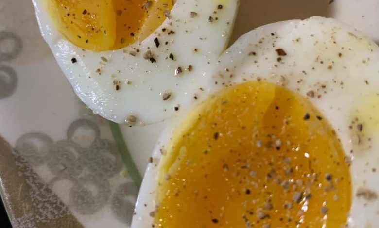 - Slice the eggs in half and season with salt and pepper to taste. You can also drizzle a bit of olive oil on top for extra flavor if desired.