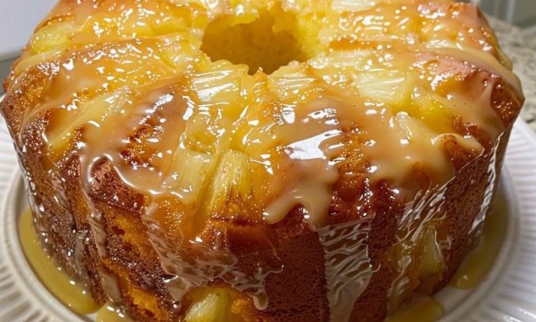 6. Glaze: In a small bowl, whisk together powdered sugar and pineapple juice until smooth. Drizzle generously over the cooled cake, letting it run naturally down the sides.