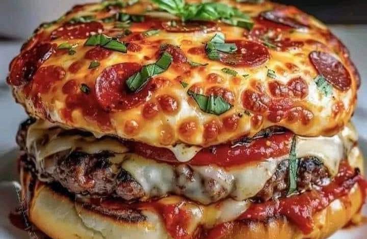 This Pizza Burger is perfect for those who love both burgers and pizza, combining the best of both worlds into one amazing meal. Enjoy!