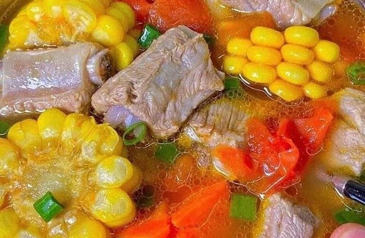 - Once the broth is clear, add corn, carrots, and tomatoes. Reduce to a simmer and cook for 40–60 minutes, or until the pork ribs are tender.