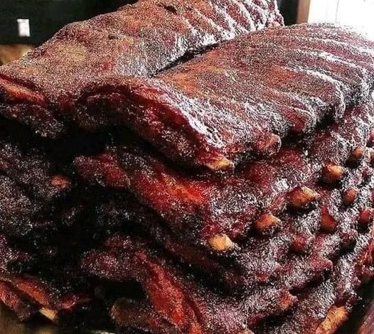 Remove the ribs from the oven, remove the aluminum foil and brush the top of the ribs with the barbecue sauce mixture.