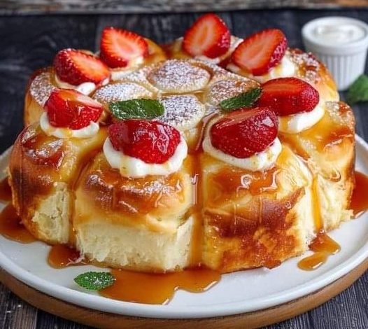 Pull-Apart Bread with Caramel Sauce and Strawberries