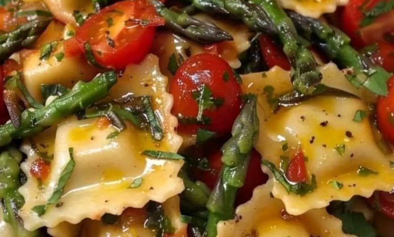 Elevate your pasta night with this simple yet elegant dish. Tender ravioli is tossed with sautéed asparagus, juicy cherry tomatoes, and aromatic garlic, then finished with fresh herbs and a touch of parmesan. It’s a light, wholesome meal that celebrates the flavors of fresh produce. Perfect for spring or summer dining! 🌱🍽️