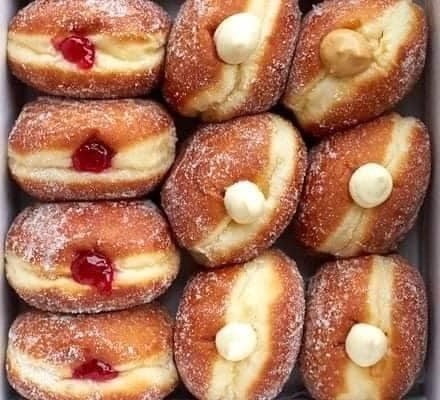 Gently roll out the donut dough to 1.5cm thick. Using 2 cutters, one large and one smaller, cut out the donut with the large cutter and make a hole in the center with the smaller one, place the donut on the baking sheet, repeat the process with all the donuts (you can cook the leftover pasta in the middle etc., then they are less attractive, but can be enjoyed very well.