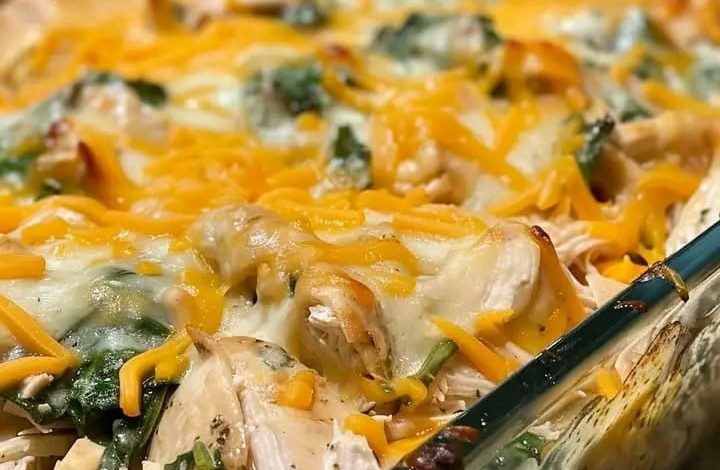 This Creamy Chicken & Spinach Cheese Bake is a comforting and hearty casserole that brings together tender shredded chicken, sautéed spinach, and rich melted cheeses in a creamy sauce. It’s the perfect all-in-one meal that works beautifully for weeknight dinners, family gatherings, or potlucks. Packed with flavor, protein, and gooey cheese, it’s a satisfying dish that will have everyone coming back for seconds.
