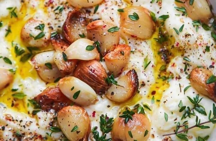 Serve the potatoes warm or hot.Add olive oil (from the bowl of roasted garlic) or melted, salted butter to the potatoes. Top with pressed, roasted garlic cloves.