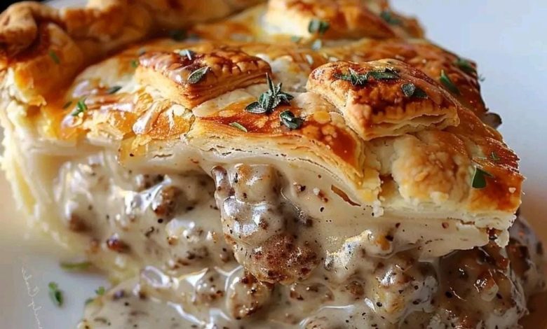 This delicious dish combines the comforting flavor of sausage gravy with puff pastry biscuits, creating a hearty and satisfying meal. It’s perfect for breakfast or brunch and will definitely be popular with family and friends.