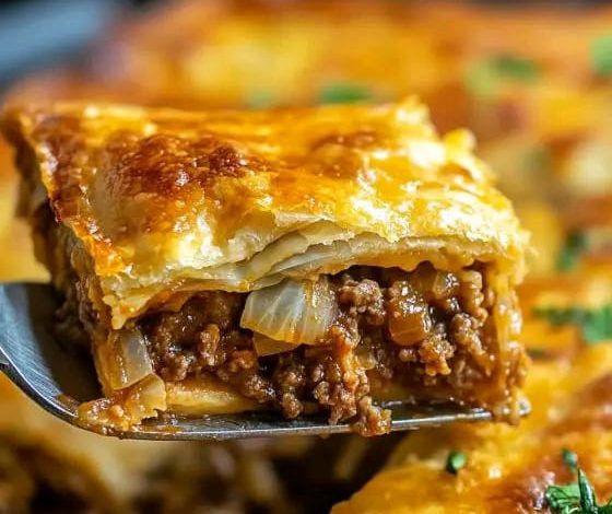 If you’re looking for a hearty, satisfying dish that’s wrapped in golden, buttery layers, this Savory Ground Beef Puff Pastry Pie is your perfect match. With its flaky crust and rich, flavorful filling, this pie is comfort food at its finest. Each bite is packed with seasoned ground beef, tender onions, and just the right balance of savory goodness. Whether you’re serving it for dinner, brunch, or even a potluck gathering, it’s guaranteed to impress. Not only is it easy to prepare, but it also bakes beautifully into a golden masterpiece that’s crisp on the outside and juicy on the inside.