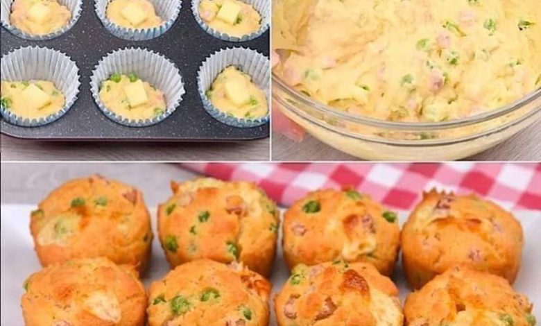 Enjoy your savory ham, cheese, and pea muffins!