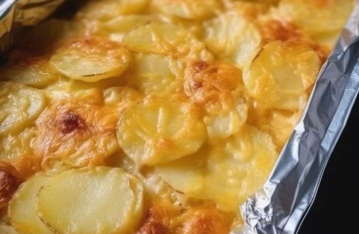 - Remove the foil and bake for an additional 30 minutes, or until the top is golden brown and the potatoes are tender.