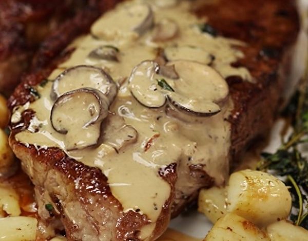 2 thin sirloin steaks (about 2.5 cm) with mushrooms, sliced