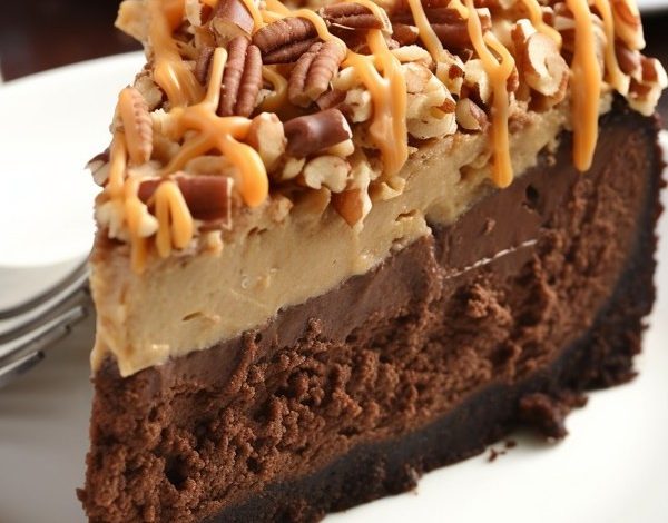 Preheat the oven to 165°C. Mix chopped chocolate with melted butter. Press under a 9-inch board. Set aside.
