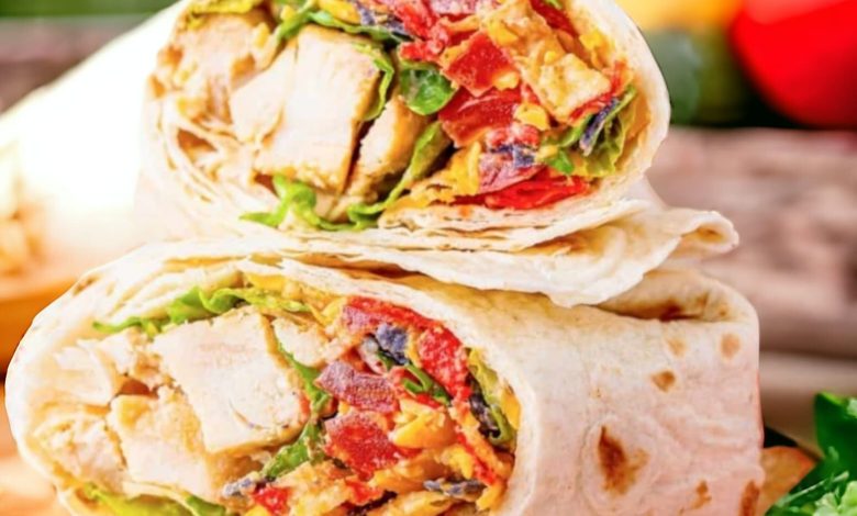 Cut the wrap in half and then prepare the remaining tortillas. Serve with additional dressing for dipping if desired.