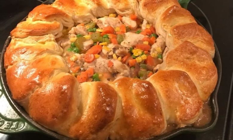 Add the chicken and bring to a boil; Cook until thickened, about 5 minutes. Mix peas, corn and oil. Spread one of the cookies on top and brush the top with egg white.