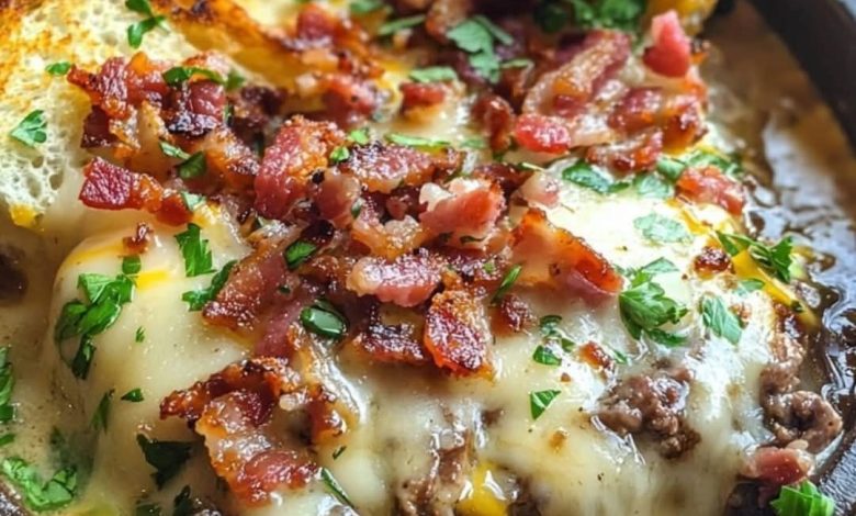 “Skillet Cheesy Beef and Bacon Melt with Crispy Toast”