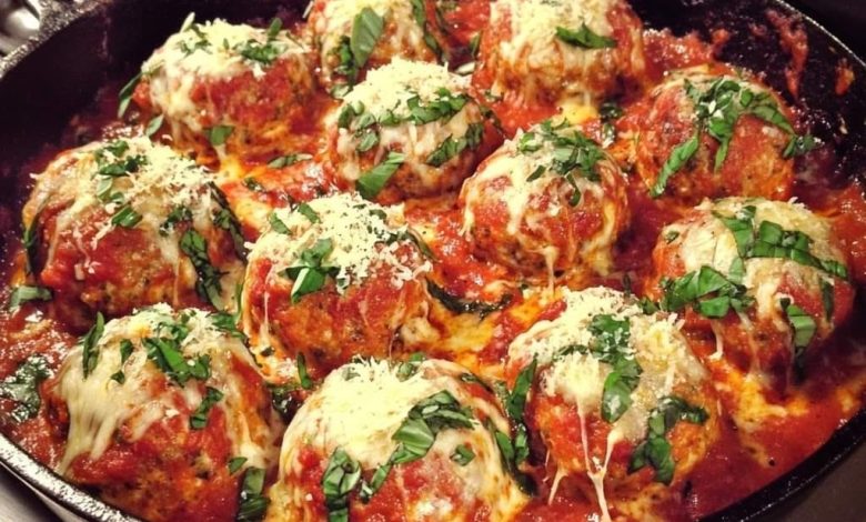 Skillet Mozzarella Meatballs