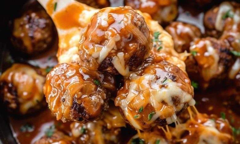 Slow Cooker French Onion Soup combines the delicious richness of French Onion Soup with the soft, comforting texture of meatballs with the perfection of slow cooking. This dish is great for gatherings, potlucks, or a hearty family meal that requires little effort but is still effective. How to make: