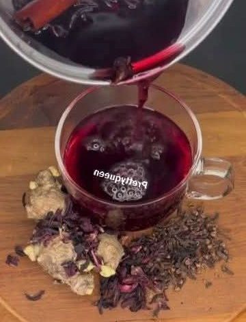 - Strain the mixture into a cup, discarding the hibiscus flowers and ginger pieces.