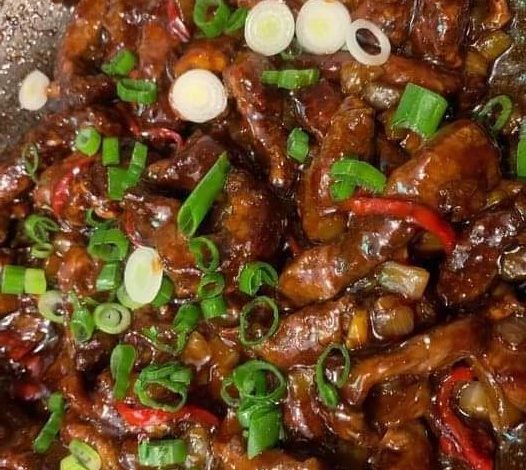 • Add the marinated beef and stir-fry until browned (about 2-3 minutes). Remove and set aside.