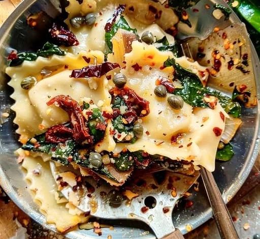This dish is a wonderful blend of textures and flavors, from the creamy filling of the ravioli to the tangy sundried tomatoes and the salty bite of capers. Serve hot, perhaps with a side of garlic bread and a fresh salad, for a complete and satisfying meal. Enjoy your culinary creation!