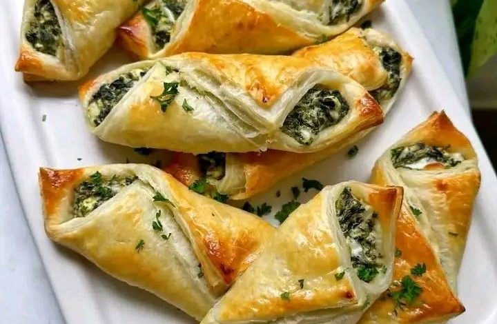 Divide the spinach mixture into each square, dividing opposite sides of each square and pressing firmly.