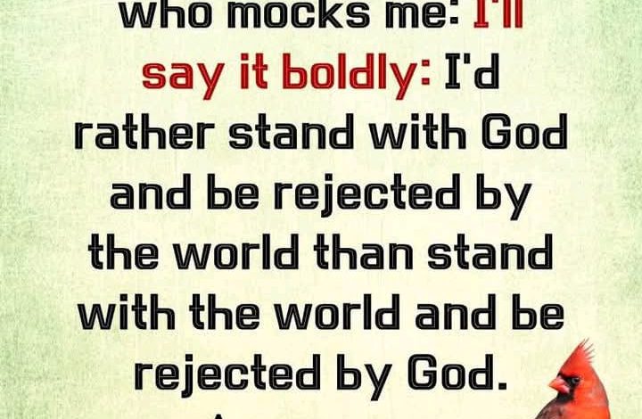 In a world that often values popularity, validation, and worldly approval above all else, choosing to walk in faith can feel isolating. The message in the image—“I don’t care who mocks me: I’ll say it boldly. I’d rather stand with God and be rejected by the world than stand with the world and be rejected by God”—is a powerful declaration of spiritual courage. It reflects a heart anchored in conviction, one that places eternal truth above temporary acceptance.