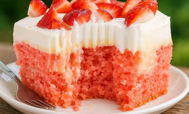 There’s something undeniably delightful about a dessert that is as beautiful as it is delicious. This Strawberries and Cream Poke Cake combines the soft, fluffy texture of strawberry-flavored cake with the creamy richness of a luscious topping and fresh strawberries. The “poke cake” method ensures every bite is infused with extra flavor, as the cake absorbs a sweet, creamy mixture poured right into its tender crumb. Topped with smooth whipped cream frosting and juicy strawberry slices, this dessert is perfect for spring gatherings, summer picnics, or any occasion where you want to impress with both flavor and presentation.
