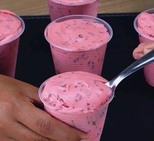 • Spoon the strawberry mousse into individual serving cups, filling each cup about 3/4 full.