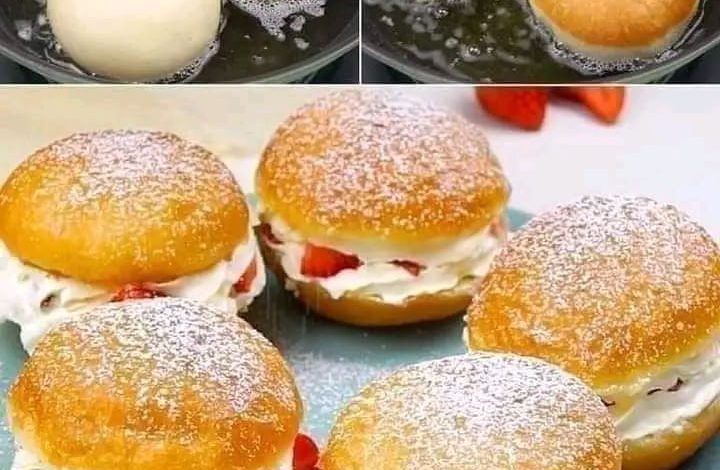 Conclusion: These strawberry cream donuts are not only a visual treat but also a delightful blend of textures and flavors. The sweet, fluffy donuts filled with light whipped cream and the bright, acidic touch of fresh strawberries make for a perfect summer dessert. Whether you’re hosting a party or simply indulging in a weekend baking project, these donuts will undoubtedly be a hit. They’re a testament to the joy of seasonal baking, combining simple ingredients to create something truly special.