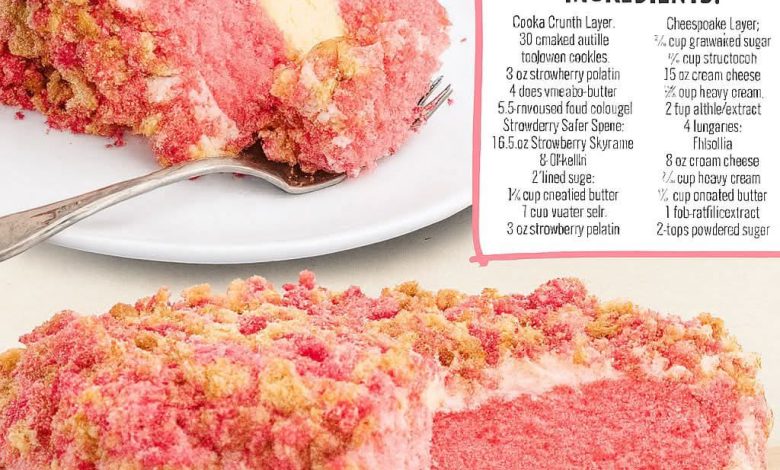 If you’re looking for a show-stopping dessert that tastes like a childhood dream, this Strawberry Shortcake Cheesecake is it. With layers of creamy vanilla cheesecake sandwiched between soft strawberry cake and coated in nostalgic pink crumble, it’s the perfect blend of flavor, texture, and color. Every bite brings together tender cake, rich cheesecake, and that iconic strawberry crunch topping that takes us back to ice cream truck memories.