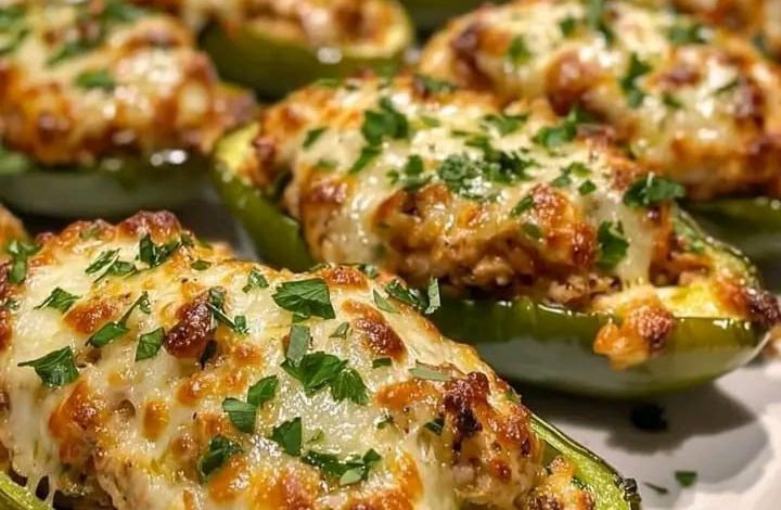 Conclusion: These cheese and herb stuffed bell peppers are not only visually appealing but also packed with flavors that meld beautifully together. The gooey cheese topping complements the hearty meat filling, making this dish a guaranteed crowd-pleaser. Serve it as a main course alongside a light salad for a balanced meal. Whether for a family dinner or a special occasion, these stuffed peppers are sure to impress!