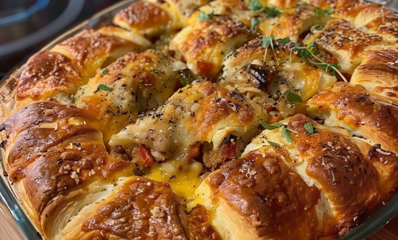 - Fill and Roll: Place a spoonful of the filling mixture onto the wide end of each crescent roll triangle. Roll up the dough from the wide end to the point, encasing the filling. Arrange the filled rolls in the prepared baking dish.
