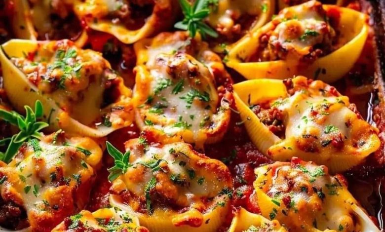 Enjoy your delicious stuffed shells with meat and cheese, a perfect dish for a comforting family meal!