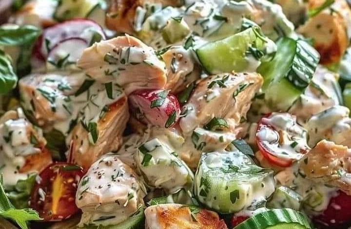 “Summery Grilled Chicken Salad with Creamy Herb Dressing”