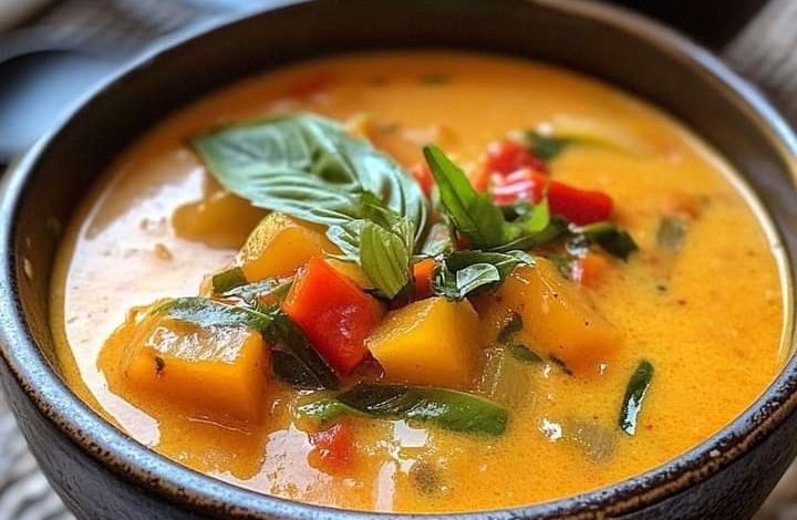 This Thai Red Curry Vegetable Soup is rich, flavorful, and packed with nutritious vegetables, making it a perfect comfort meal. Enjoy the warm and aromatic flavors with a touch of spice!